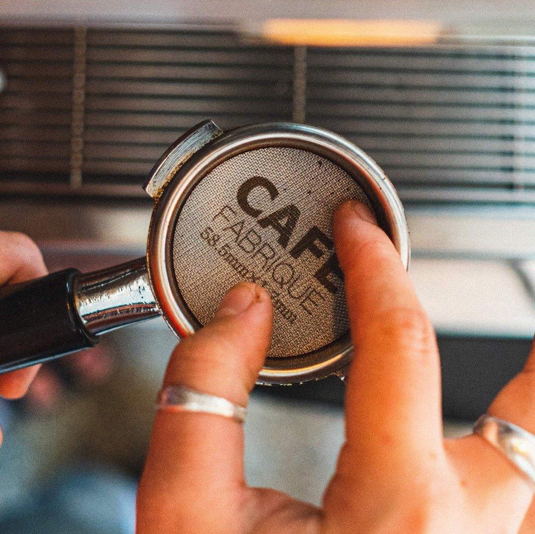 Conçu pour améliorer l'extraction de l'espresso, le tamis est un petit écran ou un disque métallique perforé qui repose sur le dessus de la cartouche d'espresso. Cette innovation s'est imposée après que Flair l'a incorporée dans sa machine à espresso Flair 58 et est désormais un outil courant dans les cafés de spécialité.