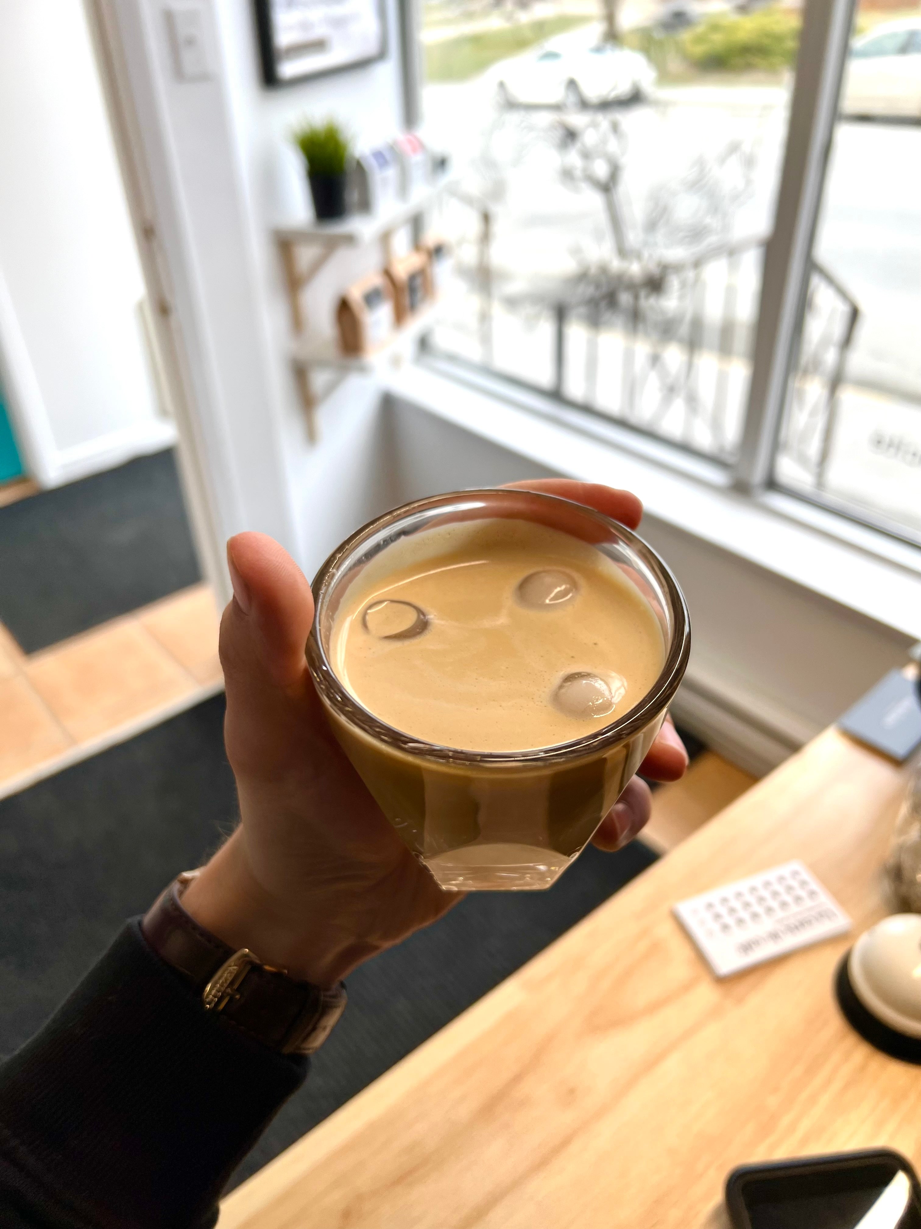 It's literally an iced Americano with aeration. We blend fragmented, aerated ice with a perfectly extracted shot of espresso to create a short, cold, creamy beverage.