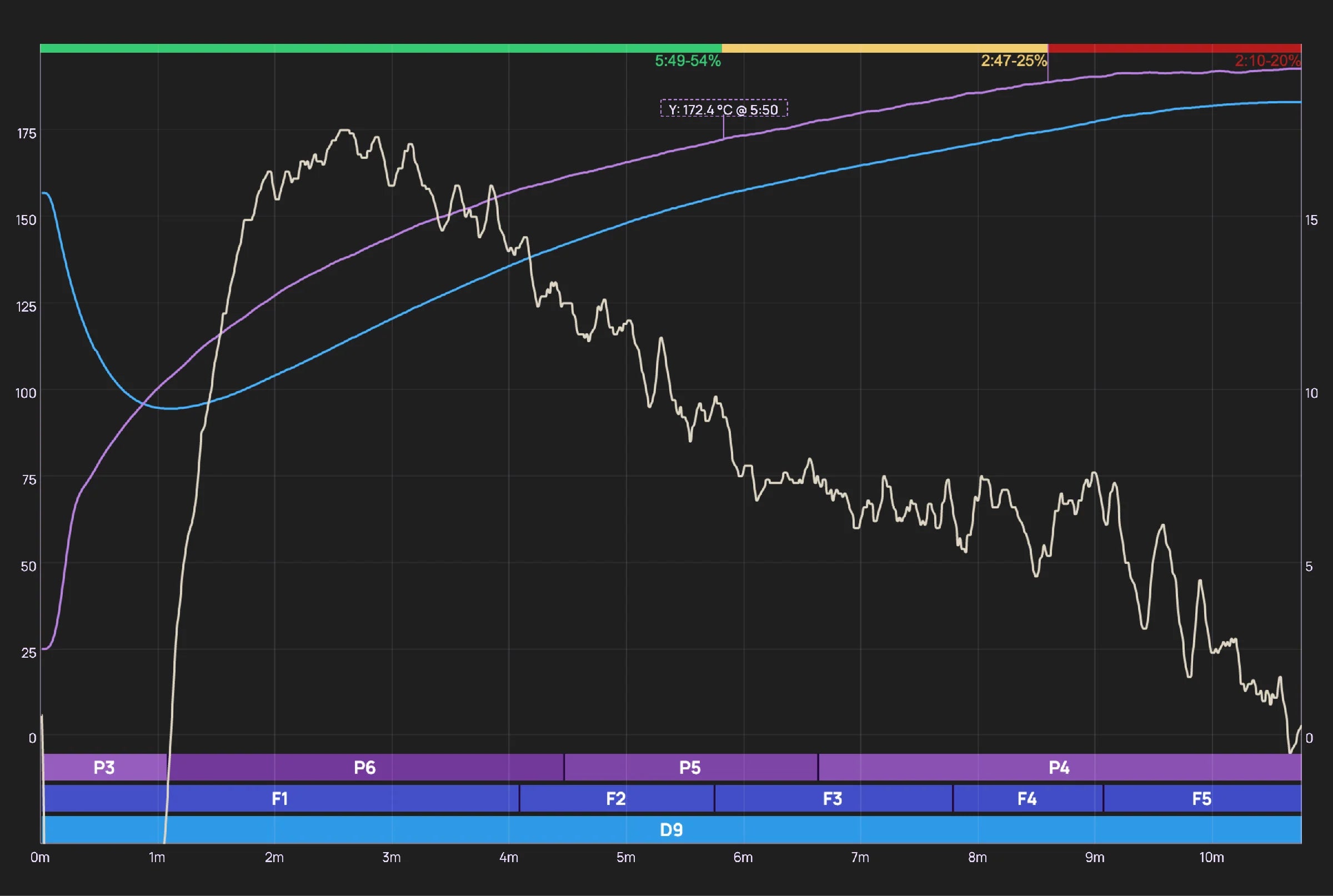 Roasting coffee is not a one-size-fits-all endeavor. The ideal roast profile is based on a number of variables, including machine type, gas pressure, and batch size. An eight-minute roast might be perfect for a small air roaster but too fast for a 12kg gas roaster. It's not about prescribing a universal time, understanding how to change your variables based on your roast outcome.
